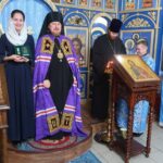 В окончании богослужения Его Преосвященство возглавил славление, за которым вознес молитву Божией Матери. По отпусте и благодарственным молитвам по причащении владыка поздравил духовенство и прихожан с престольным праздником, а также с принятием Святых Христовых Тайн и напутствовал всех добрым словом.