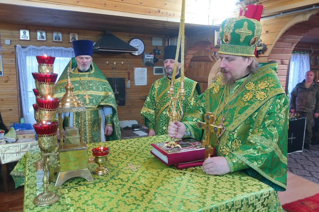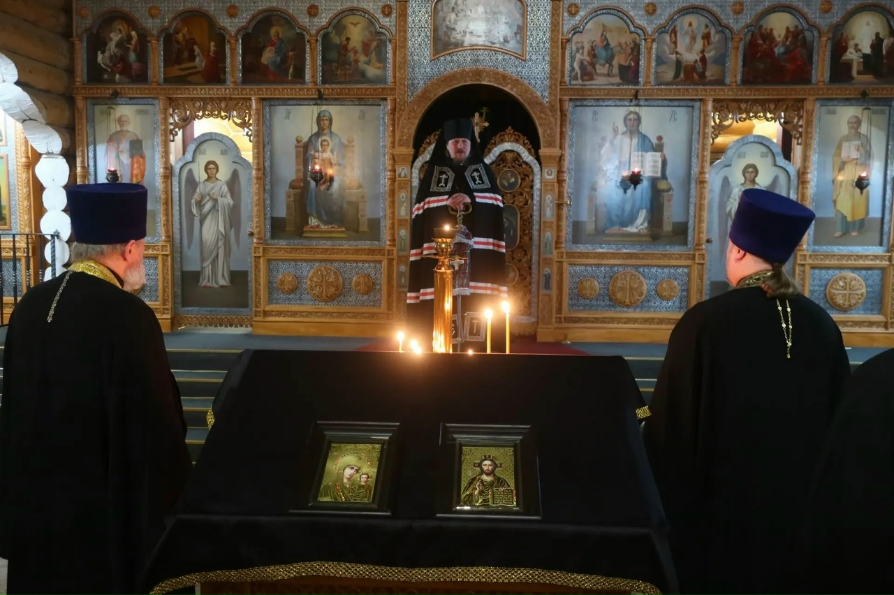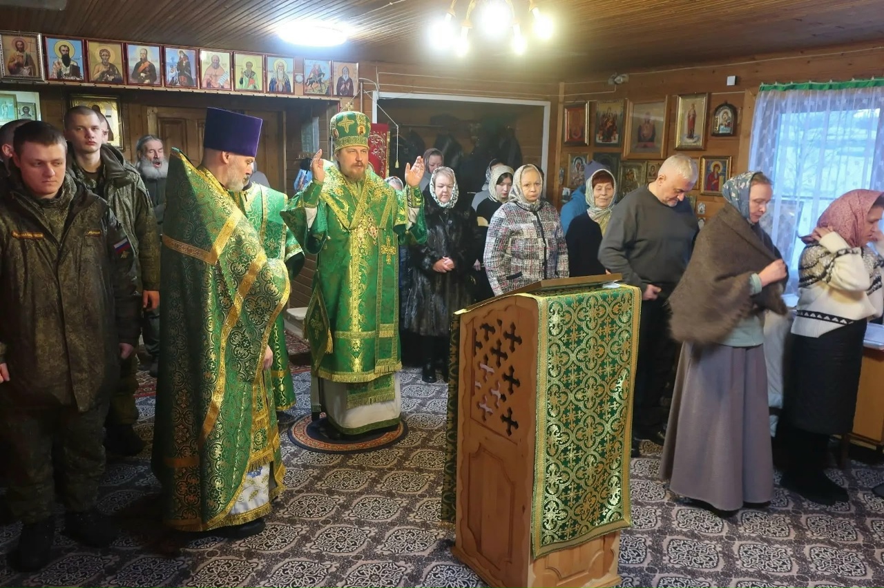 За богослужением владыке сослужили настоятель собора протоиерей Александр Козачук, протоиерей Леонид Сулоев, протоиерей Сергий Чериченко, иерей Сергий Евграфов, иеродиакон Феодорит (Линков), иподиаконы Роман Мухаметов, Георгий Бурцев и Алексий Ившин.