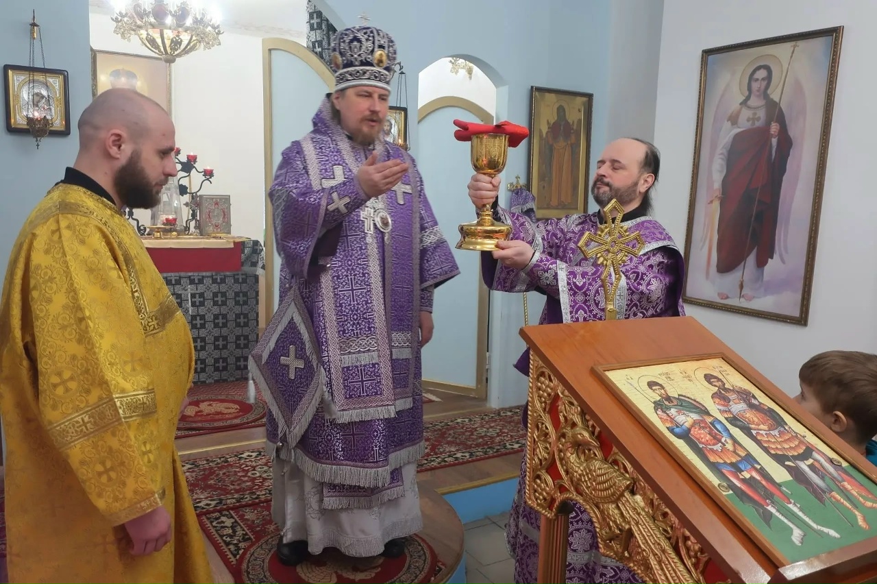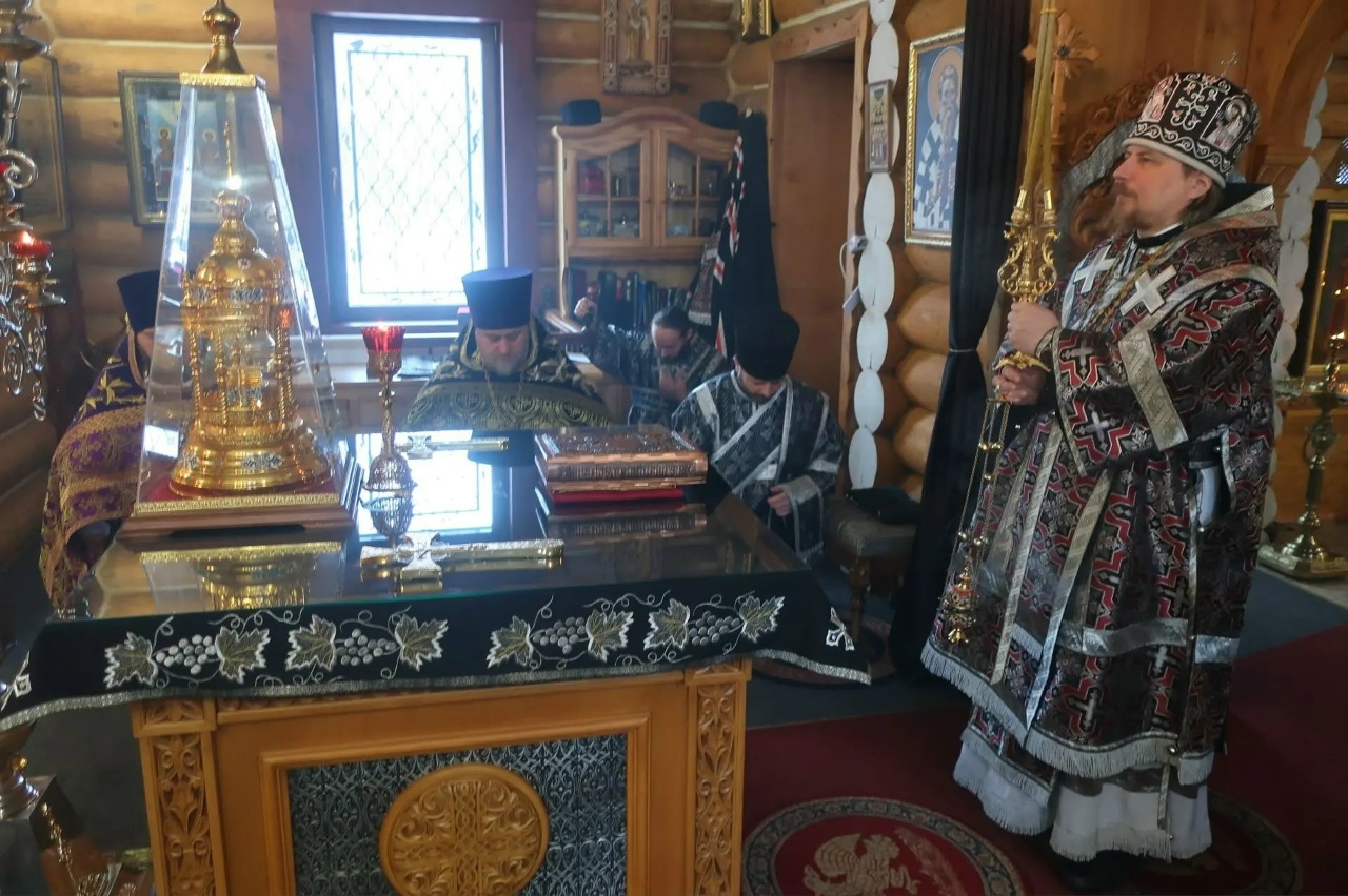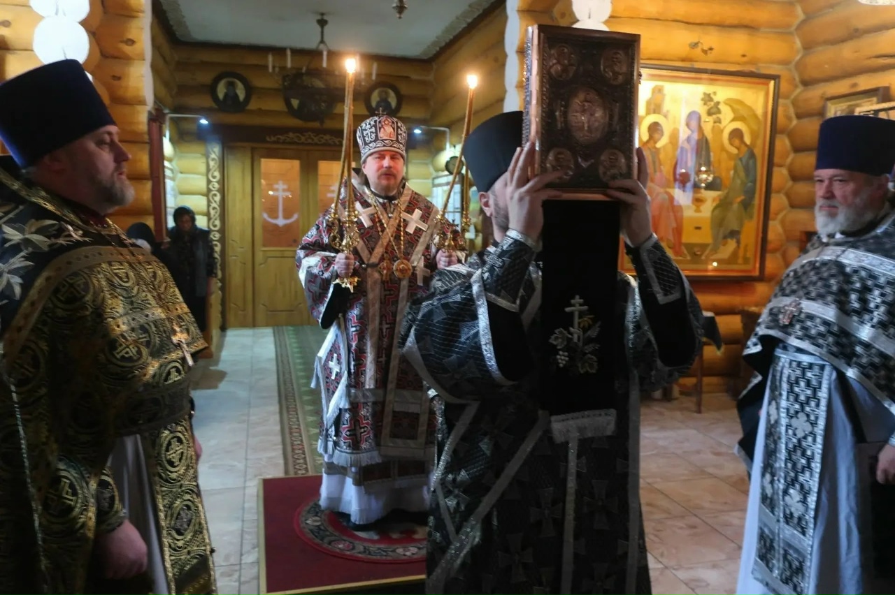 28 февраля епископ Североморский и Умбский Тарасий возглавил Божественную литургию в храме пророка Божия Илии п. Сафоново. За богослужением владыке сослужили настоятель храма иерей Вячеслав Бондарев, иеродиакон Феодорит (Линков), иподиаконы Роман Мухаметов и Георгий Бурцев.