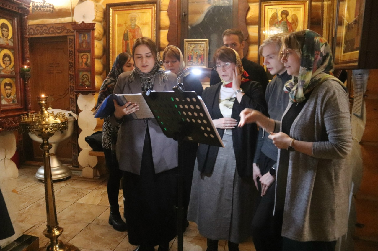 Богослужебные песнопения исполнил смешанный хор кафедрального собора под руководством Елизаветы Ившиной.
