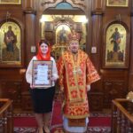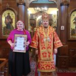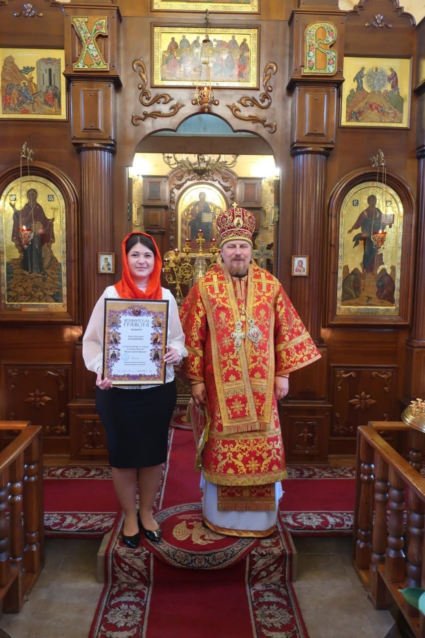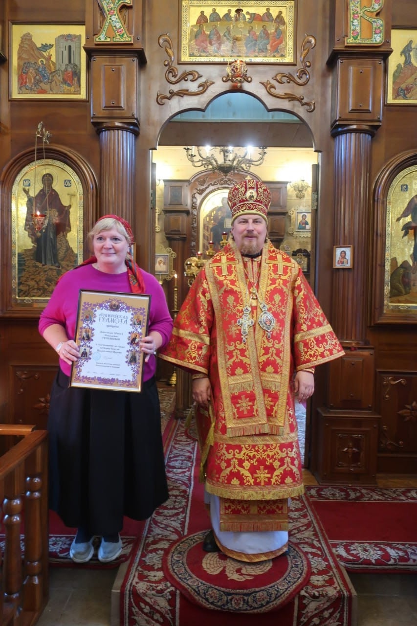 После проповеди за труды на благо Русской Православной Церкви правящий архиерей Североморской епархии наградил особо потрудившихся прихожан архиерейскими грамотами и благодарностями.