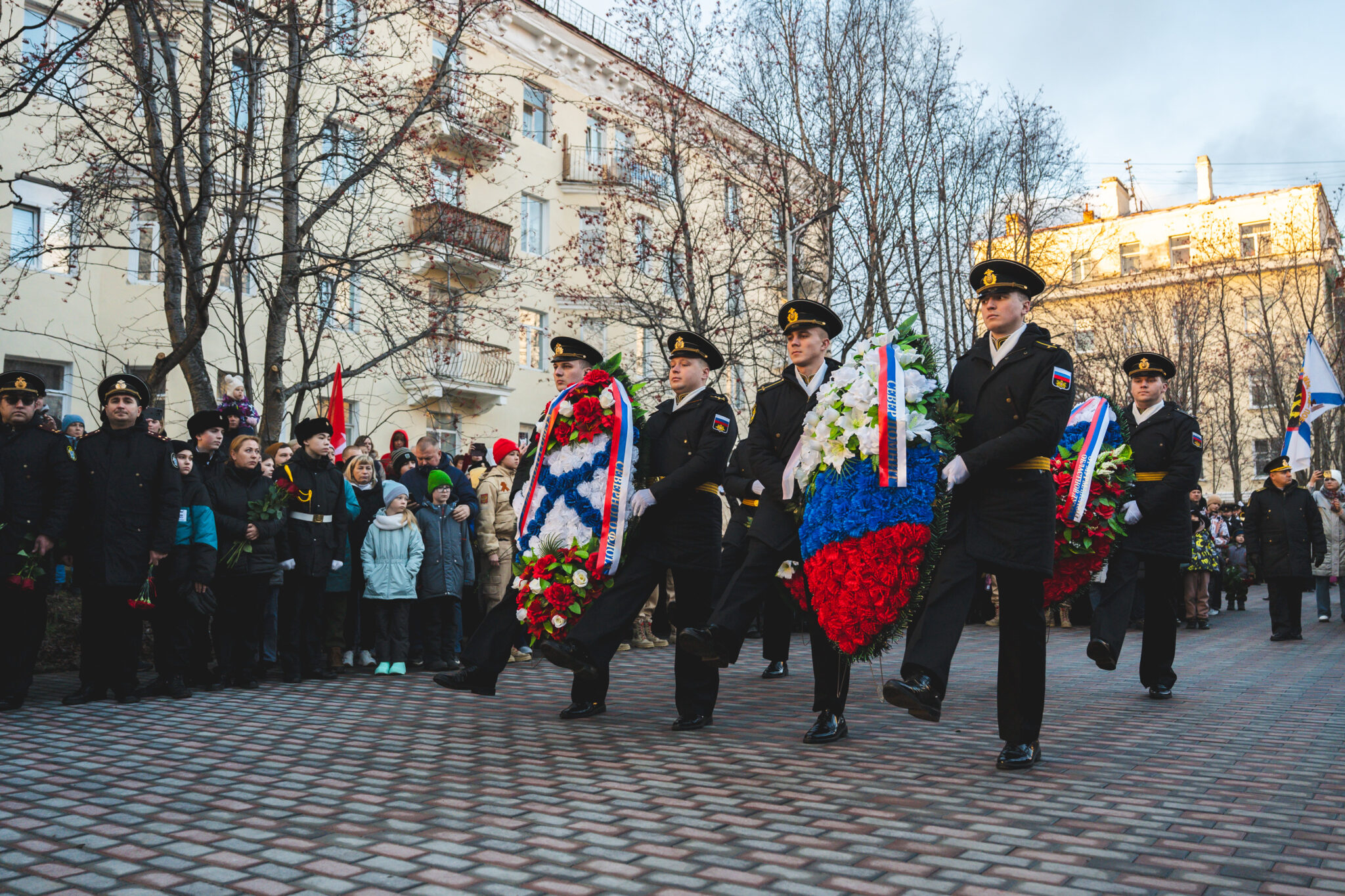 Североморск Владимир Евменьков, военнослужащие Северного Флота, представители общественных организаций, учащиеся образовательных учреждений Североморска, жители города. Автором монумента стал известный скульптор Александр Арсентьев.