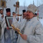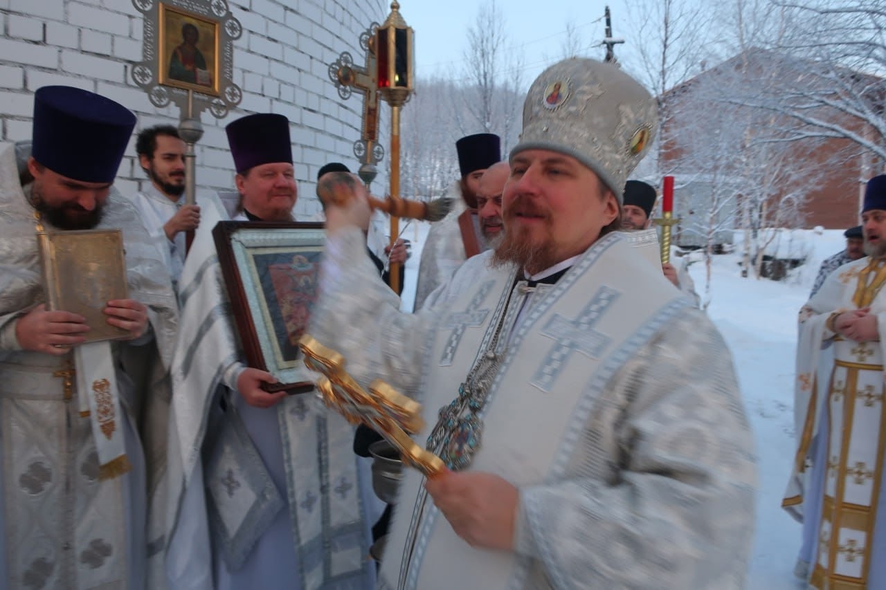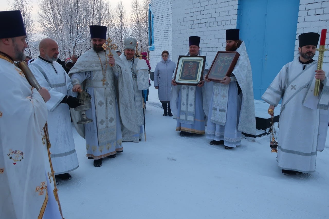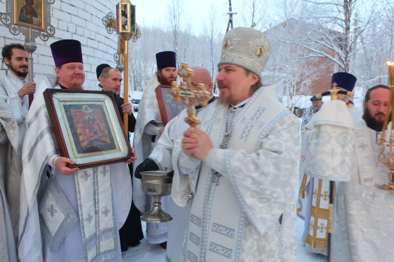 За Божественной литургией владыке сослужили настоятель храма протоиерей Игорь Дигтярёв, секретарь епархиального управления протоиерей Александр Козачук, штатный священник храма Благовещения Пресвятой Богородицы г. Кола протоиерей Алексий Карпов, иерей Анатолий Колосов, иеродиакон Феодорит (Линков), иподиаконы Роман Мухаметов и Георгий Бурцев. Накануне в одноименном храме правящий архиерей отслужил всенощное бдение.