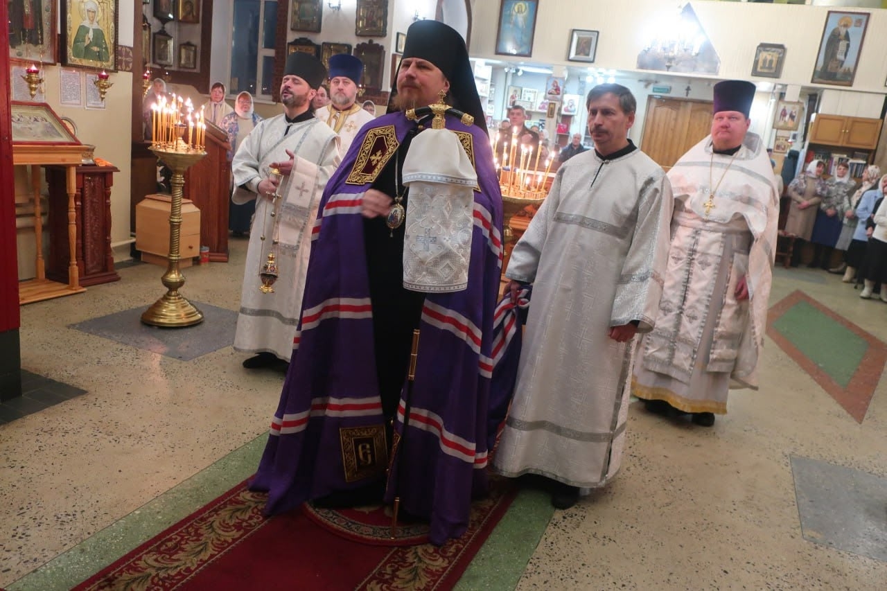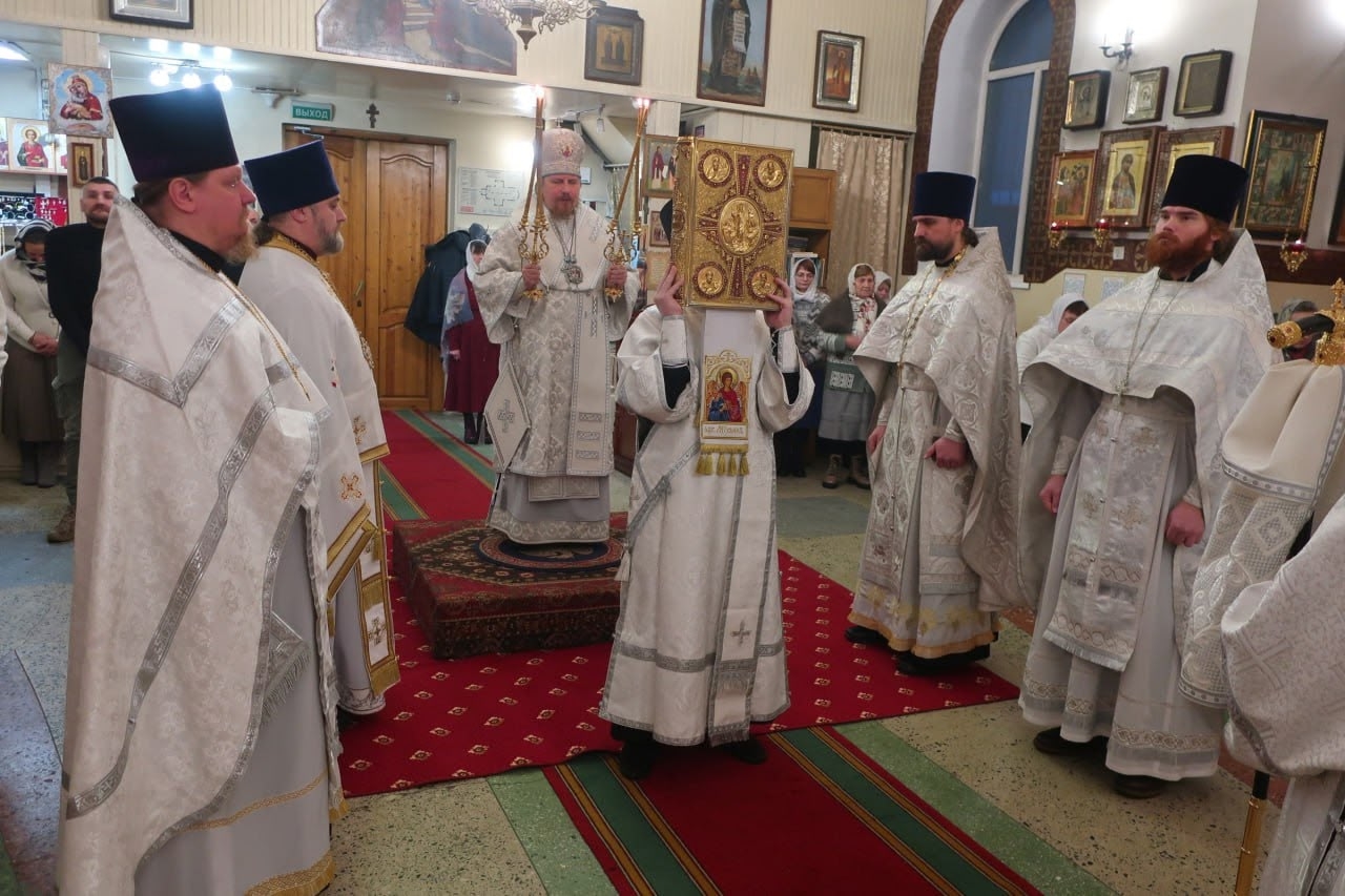 После чтения Святого Евангелия епископ Тарасий обратился к верующим с архипастырским словом. На сугубой ектении были вознесены особые прошения о Российском воинстве. Владыка возгласил молитву о Святой Руси.
