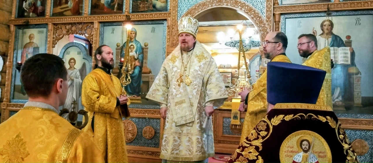 На сугубой ектении были вознесены особые прошения о Российском воинстве. Владыка Тарасий возгласил молитву о Святой Руси.