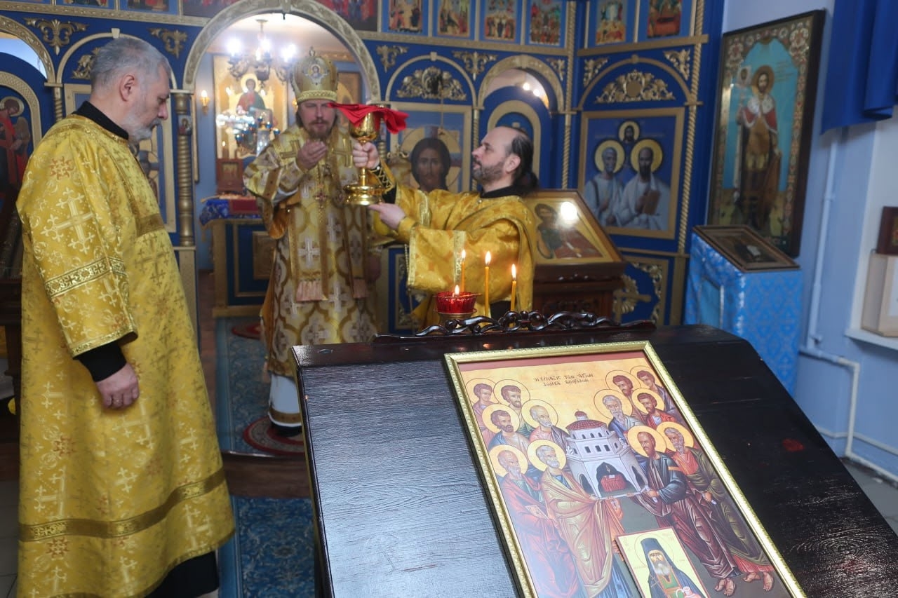 29 ноября 2025 года, в день памяти св. апостола и евангелиста Матфея и преподобномученика Филумена Святогробца, епископ Североморский и Умбский Тарасий возглавил Божественную литургию в храме Казанской иконы Божией Матери г. Североморска. За богослужением владыке сослужили настоятель храма иерей Анатолий Колосов, иеродиакон Феодорит (Линков), иподиаконы Роман Мухаметов и Георгий Бурцев.