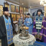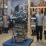В престольный праздник прихода Его Преосвященство, в сопровождении настоятеля храма иерея Сергия Филиппова и духовенства, посетил место
