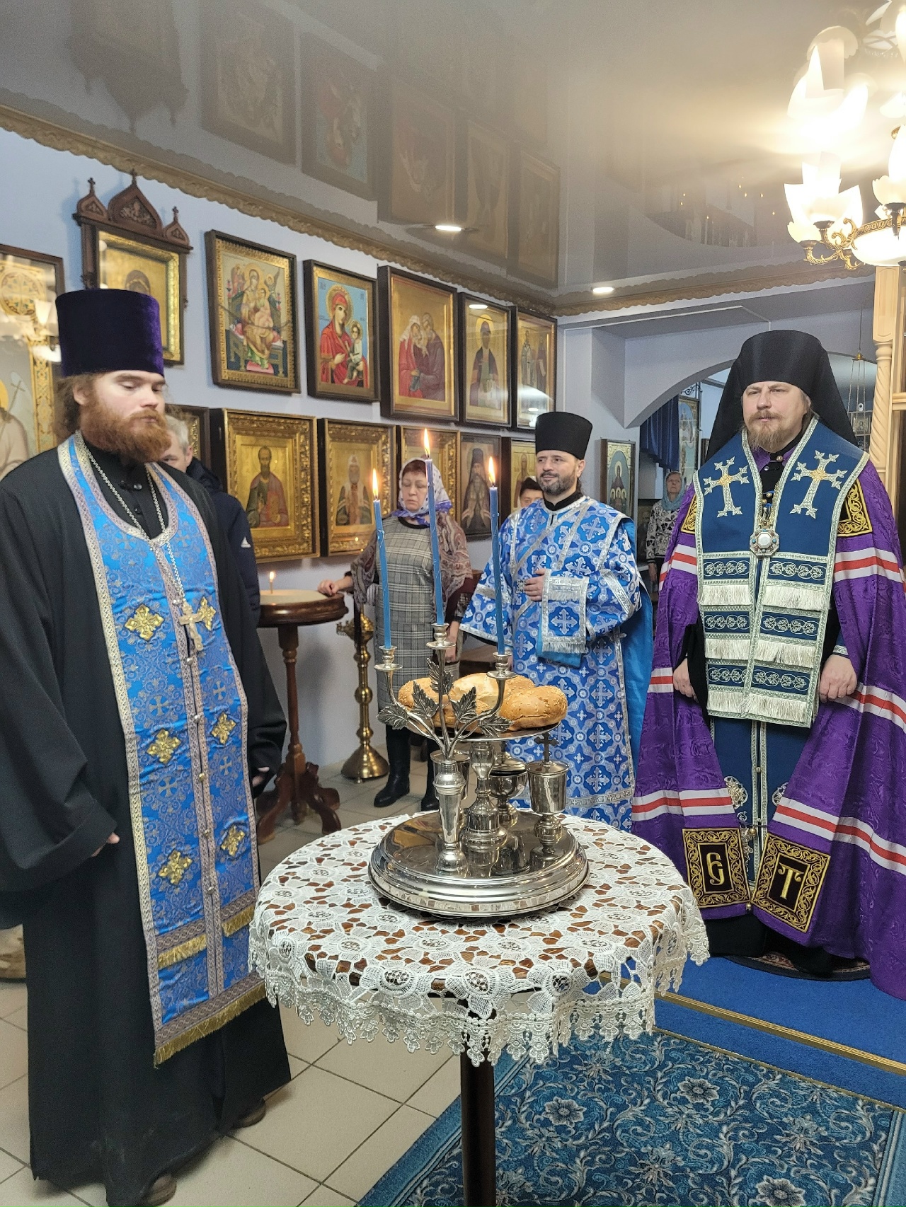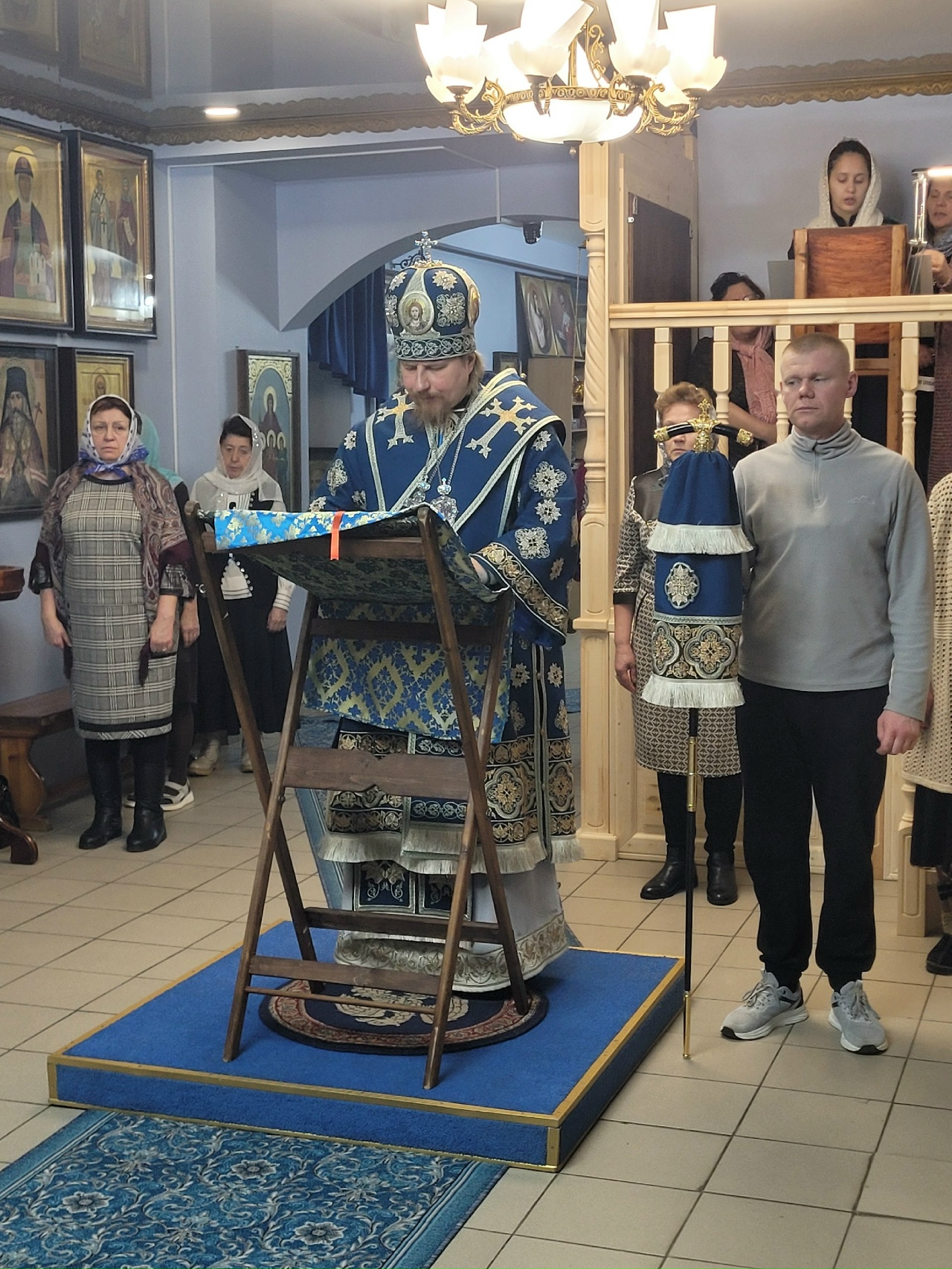 В престольный праздник прихода Его Преосвященство, в сопровождении настоятеля храма иерея Сергия Филиппова и духовенства, посетил место