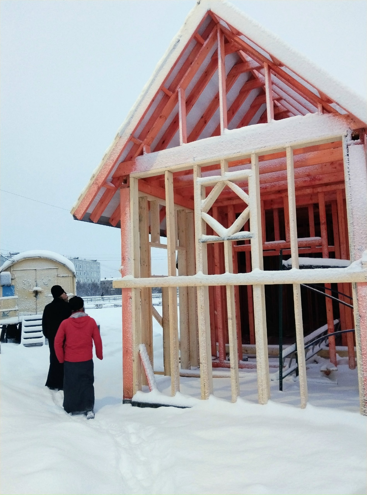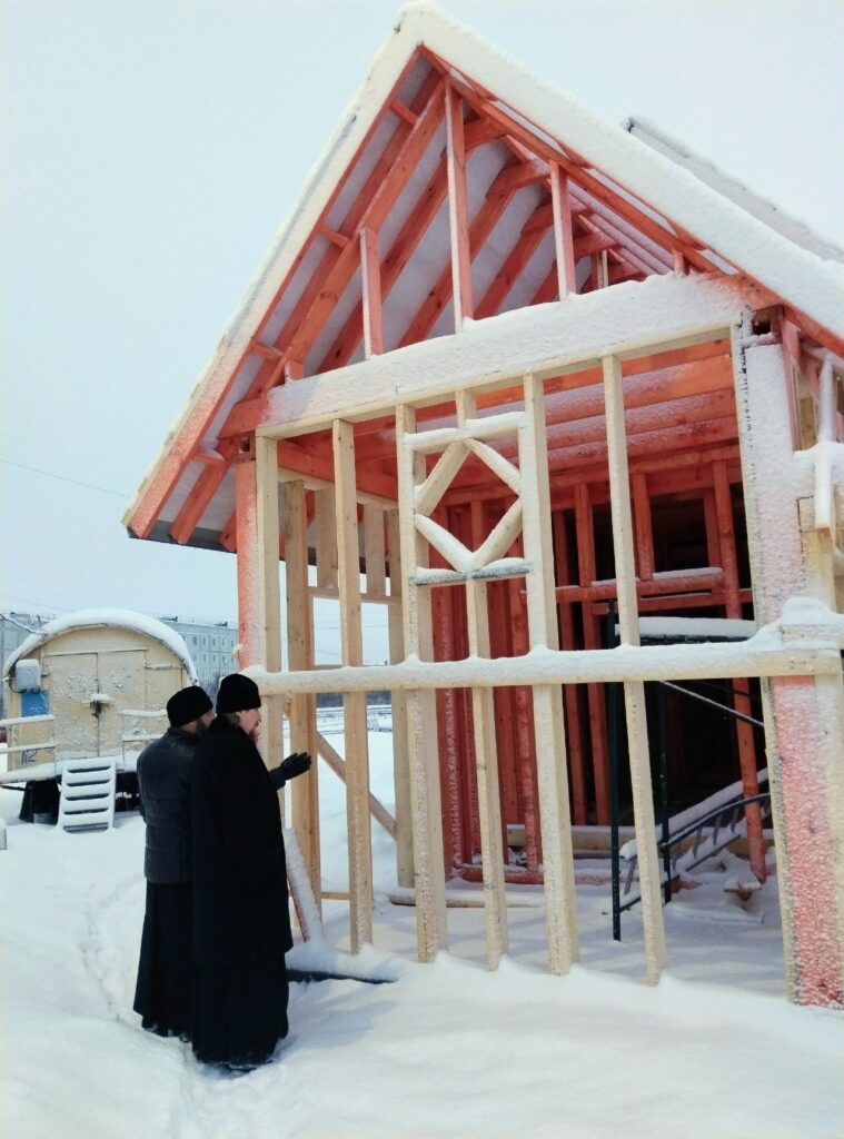 нового строящегося храма. Владыка осмотрел место строительных работ, поинтересовался о дальнейших планах строительства на зимнее время и, прощаясь, преподал настоятелю и сопровождавшим благословение.