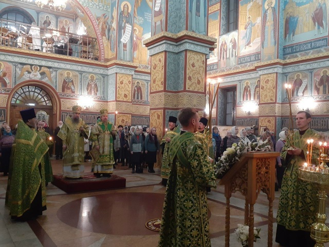 9 декабря 2025 года в кафедральном соборе города Череповца по случаю дня памяти преподобных Афанасия и Феодосия Череповецких и престольного праздника состоялось соборное архиерейское богослужение.