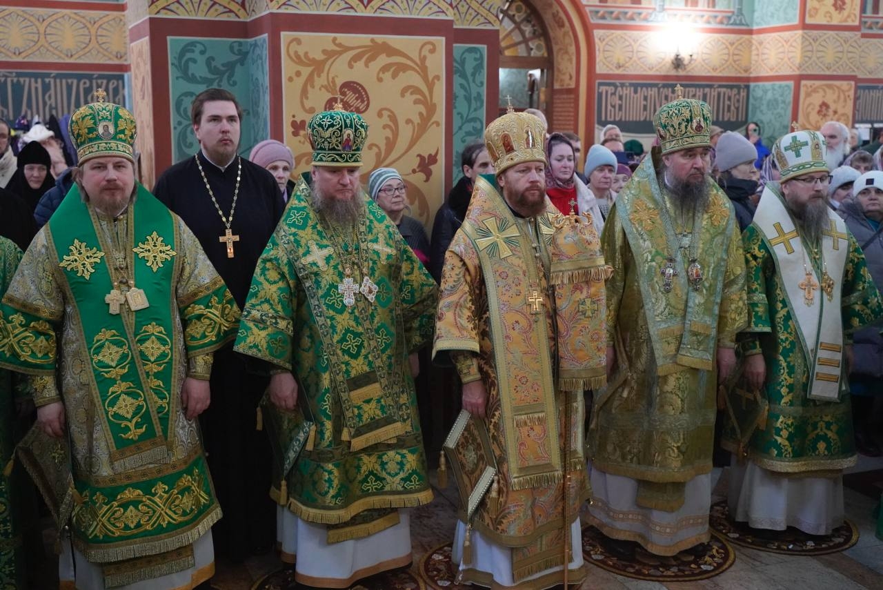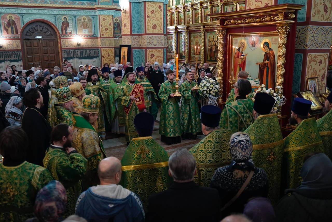 9 декабря 2025 года в кафедральном соборе города Череповца по случаю дня памяти преподобных Афанасия и Феодосия Череповецких и престольного праздника состоялось соборное архиерейское богослужение.