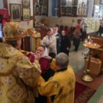 По отпусте и благодарственным молитвам по причащении Его Преосвященство поздравил духовенство и верующих с принятием Святых Христовых Тайн и напутствовал всех добрым словом.