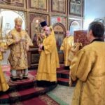 По отпусте и благодарственным молитвам по причащении Его Преосвященство поздравил духовенство и верующих с принятием Святых Христовых Тайн и напутствовал всех добрым словом.