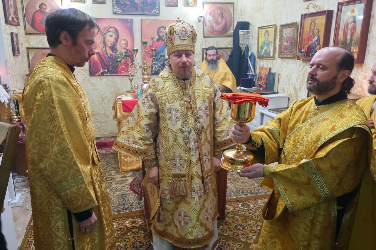 25 декабря 2025 года епископ Североморский и Умбский Тарасий возглавил Божественную литургию в храме свт. Спиридона Тримифунтского п. Сафоново-1. За богослужением владыке сослужили настоятель храма иерей Вячеслав Бондарев, иеродиакон Феодорит (Линков), иподиаконы Роман Мухаметов и Георгий Бурцев.