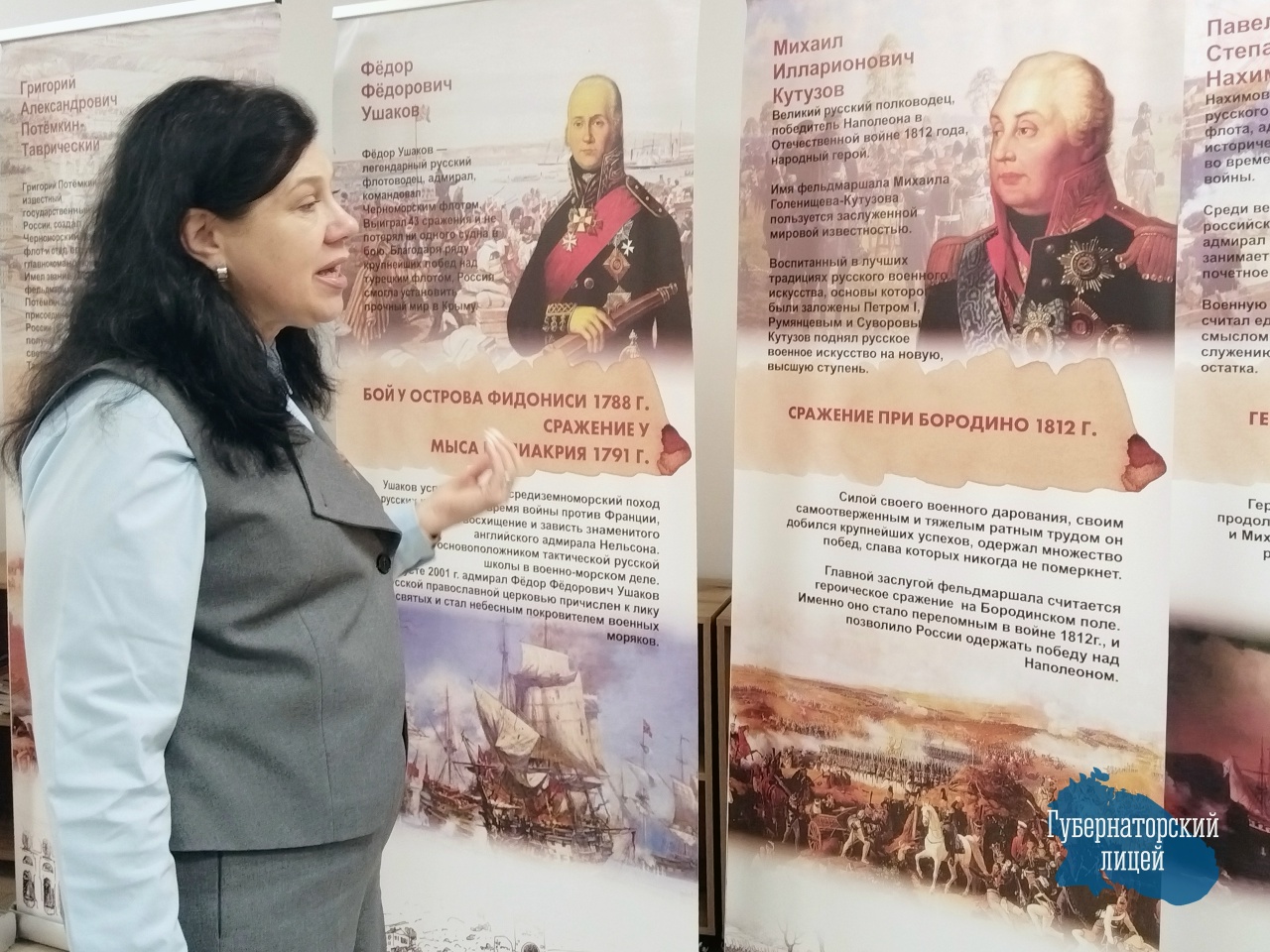 продолжают славные традиции своих предшественников, проявляя мужество и стойкость в защите нашей Родины. Экскурсию для первых посетителей провела директор Губернаторского лицея Лариса Валентиновна Михайлова. Экспозиция будет функционировать до Нового года и после новогодних праздников, чтобы ученики всех классов смогли посетить выставку и экскурсии.