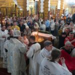 По завершении Божественной литургии было совершено славление празднику Рождества Христова, после чего Его Преосвященство обратился к верующим с архипастырским словом. После проповеди владыка поздравил прихожан и духовенство с праздником Рождества Христова, а также с принятием Святых Христовых Тайн и пожелал всем доброго здравия.