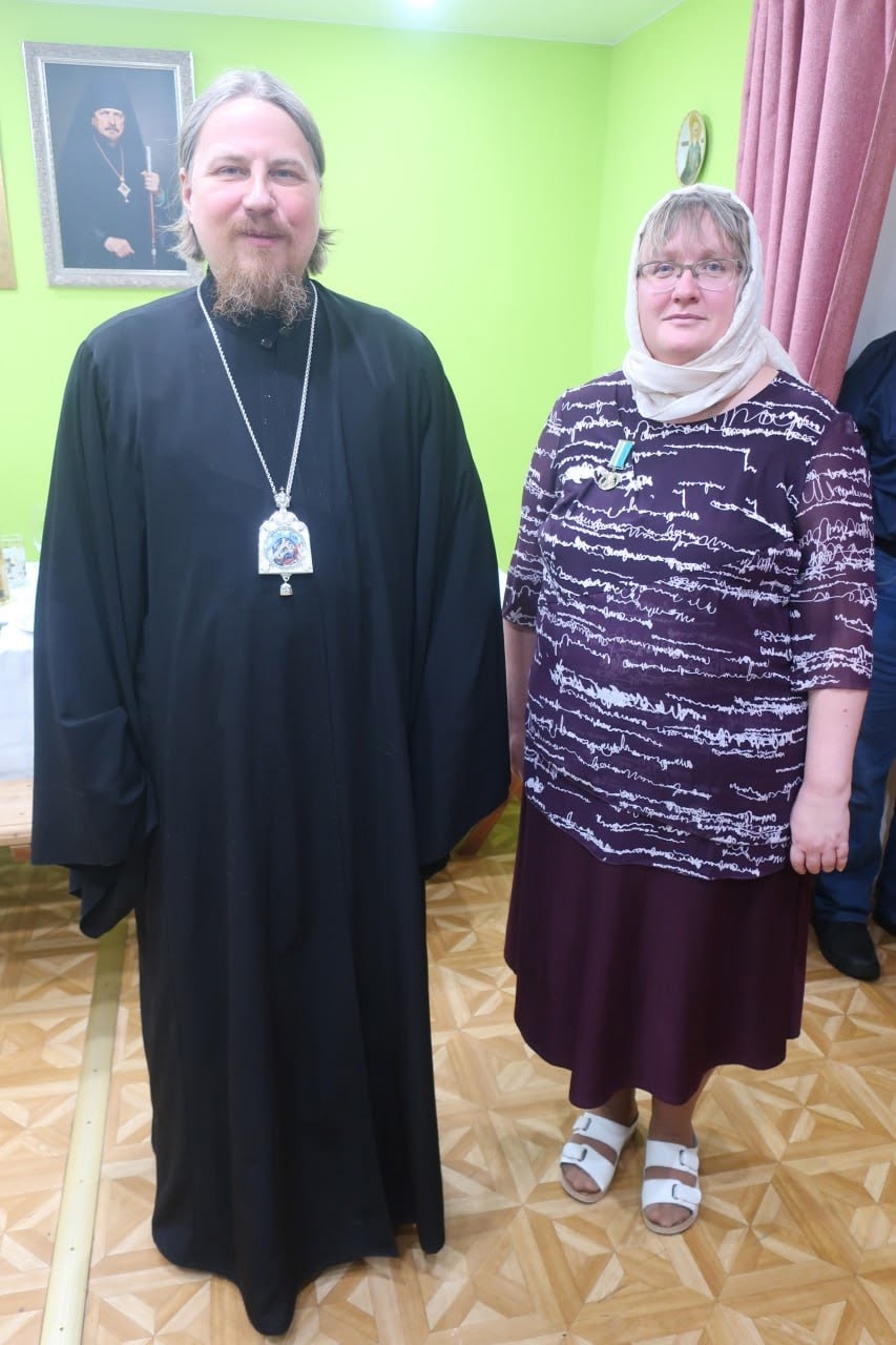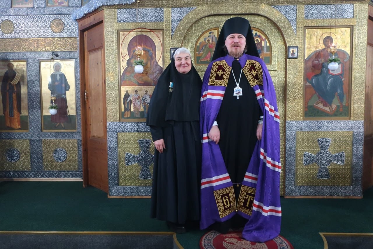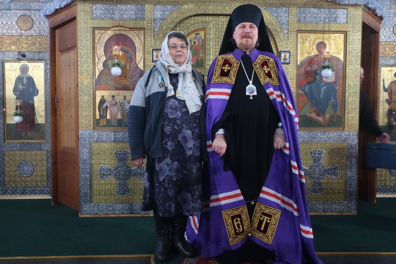 После Божественной литургии, во внимание к трудам на благо Святой Церкви, Его Преосвященство наградил медалями прп. Феодорита Кольского III степени матушку Анну Иванову, регента храма монахиню Гликерию и других особо потрудившихся прихожан.