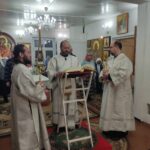 Владыке сослужили иеромонах Никодим (Коливатов), иерей Алексий Серов, иеродиакон Феодорит (Линков) и диакон Александр Мельник. Регентовала Татьяна Мельник. После богослужения епископ Тарасий произнёс проповедь, а также поздравил с 70-летием алтарника Воскресенского храма Владимира Конухина, вручив ему медаль преподобного Феодорита Кольского II степени.