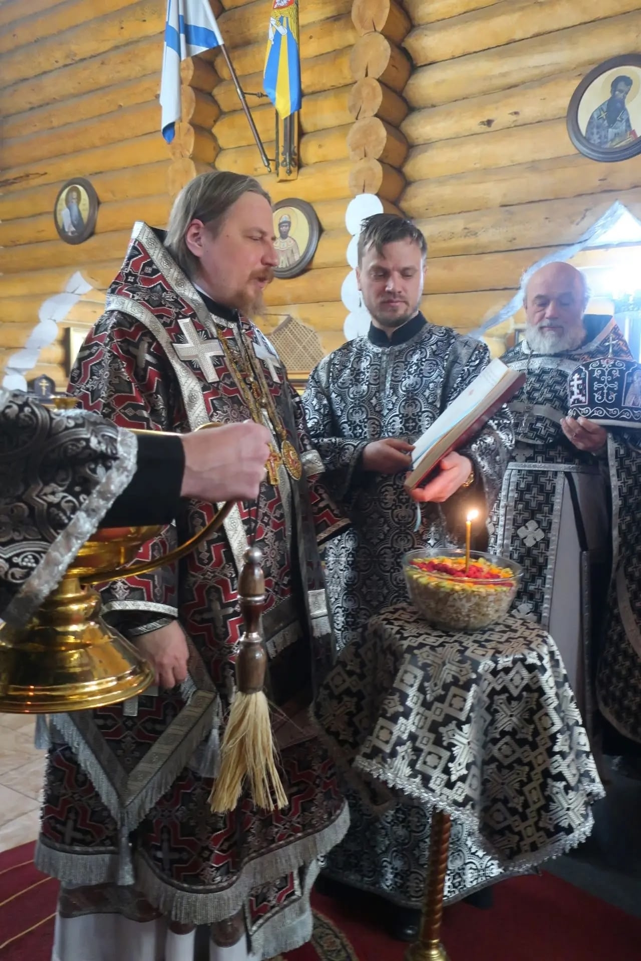 На сугубой ектении были вознесены особые прошения о Российском воинстве. Владыка Тарасий возгласил молитву о Святой Руси.