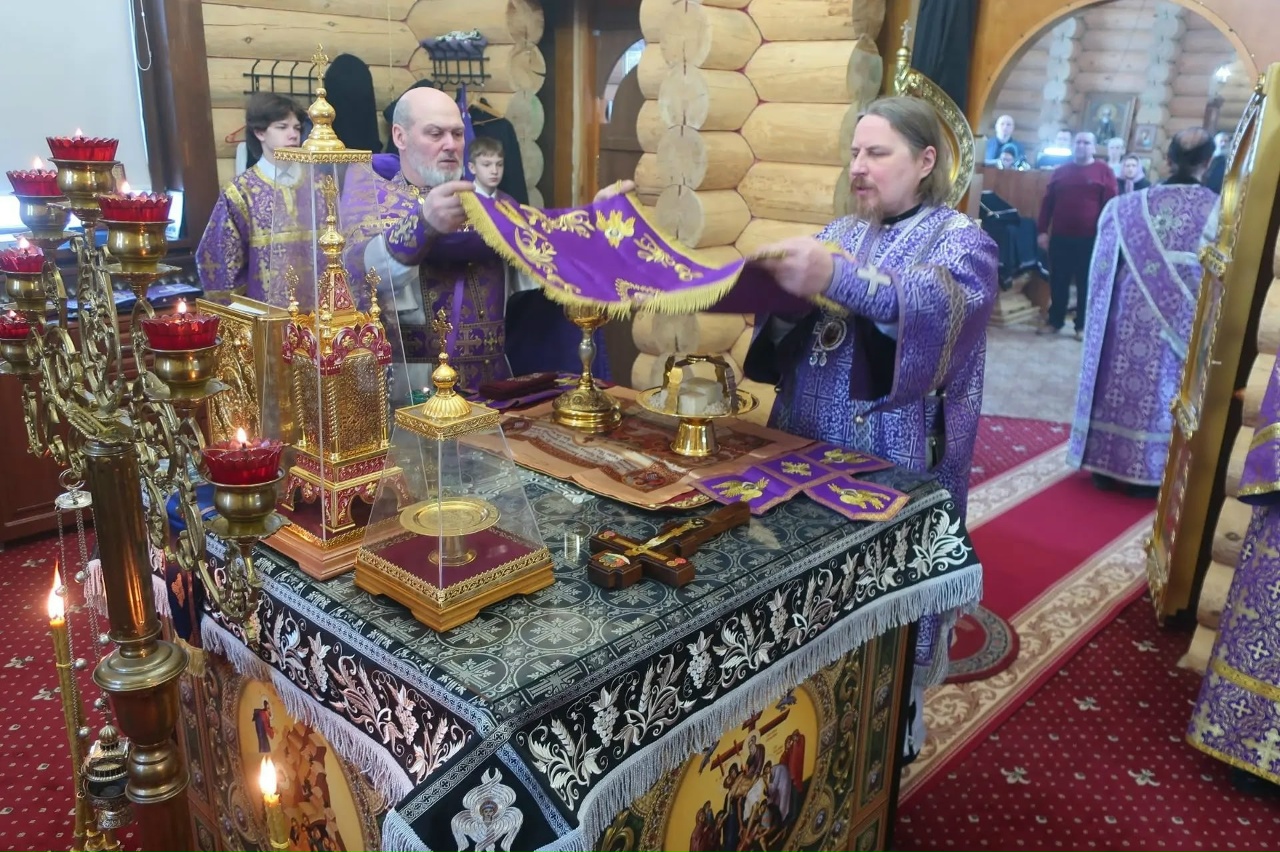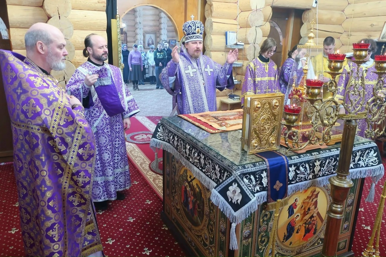 8 марта 2026 года, в Неделю 2-ю Великого поста, святителя Григория Пала́мы и день памяти блж. Матроны Московской, епископ Североморский и Умбский Тарасий совершил Литургию святителя Василия Великого в Свято-Троицком храме г. Заполярного. За богослужением владыке сослужили настоятель храма иерей Олег Дениченко, иеродиакон