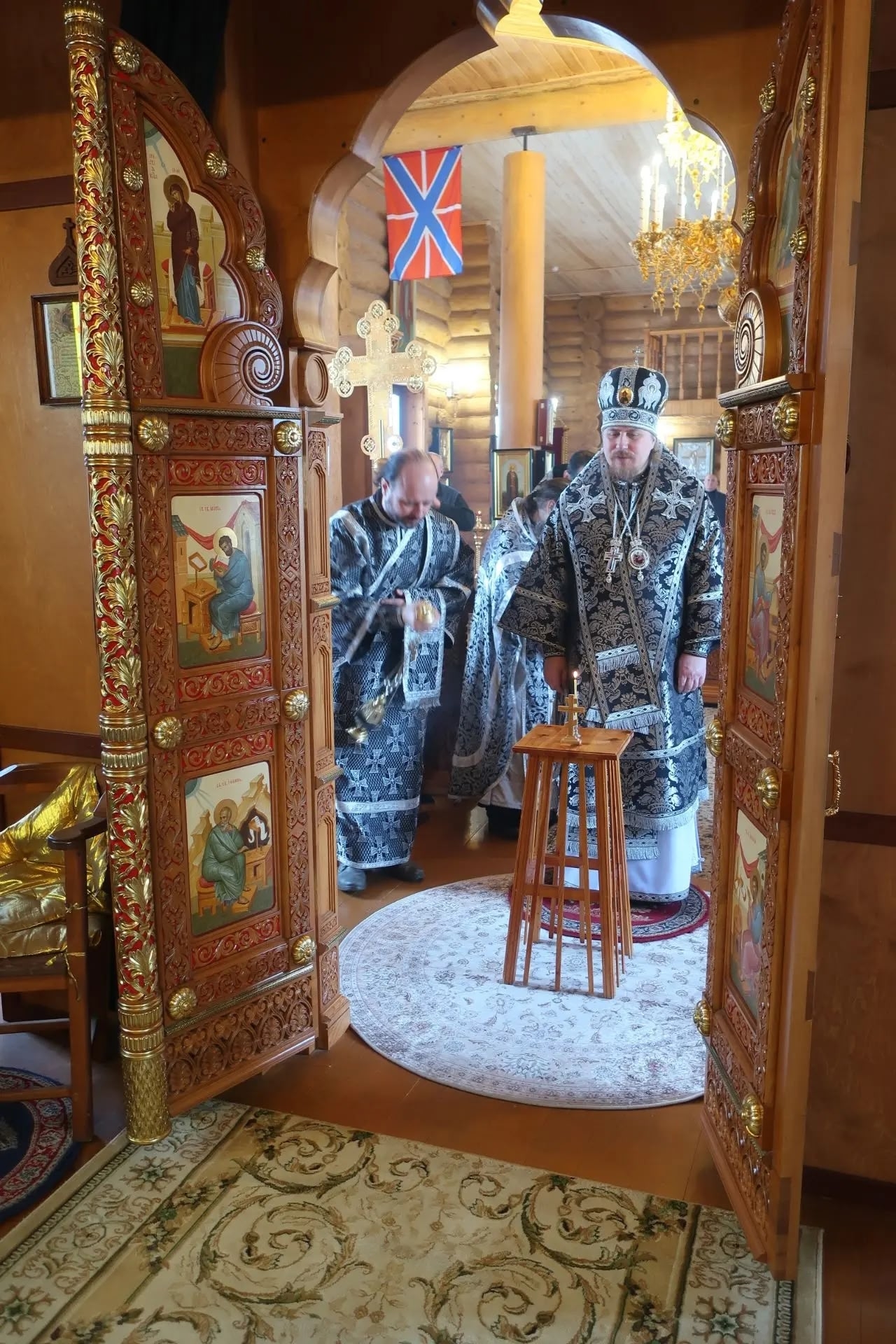 На сугубой ектении были вознесены особые прошения о Российском воинстве. Владыка Тарасий возгласил молитву о Святой Руси.