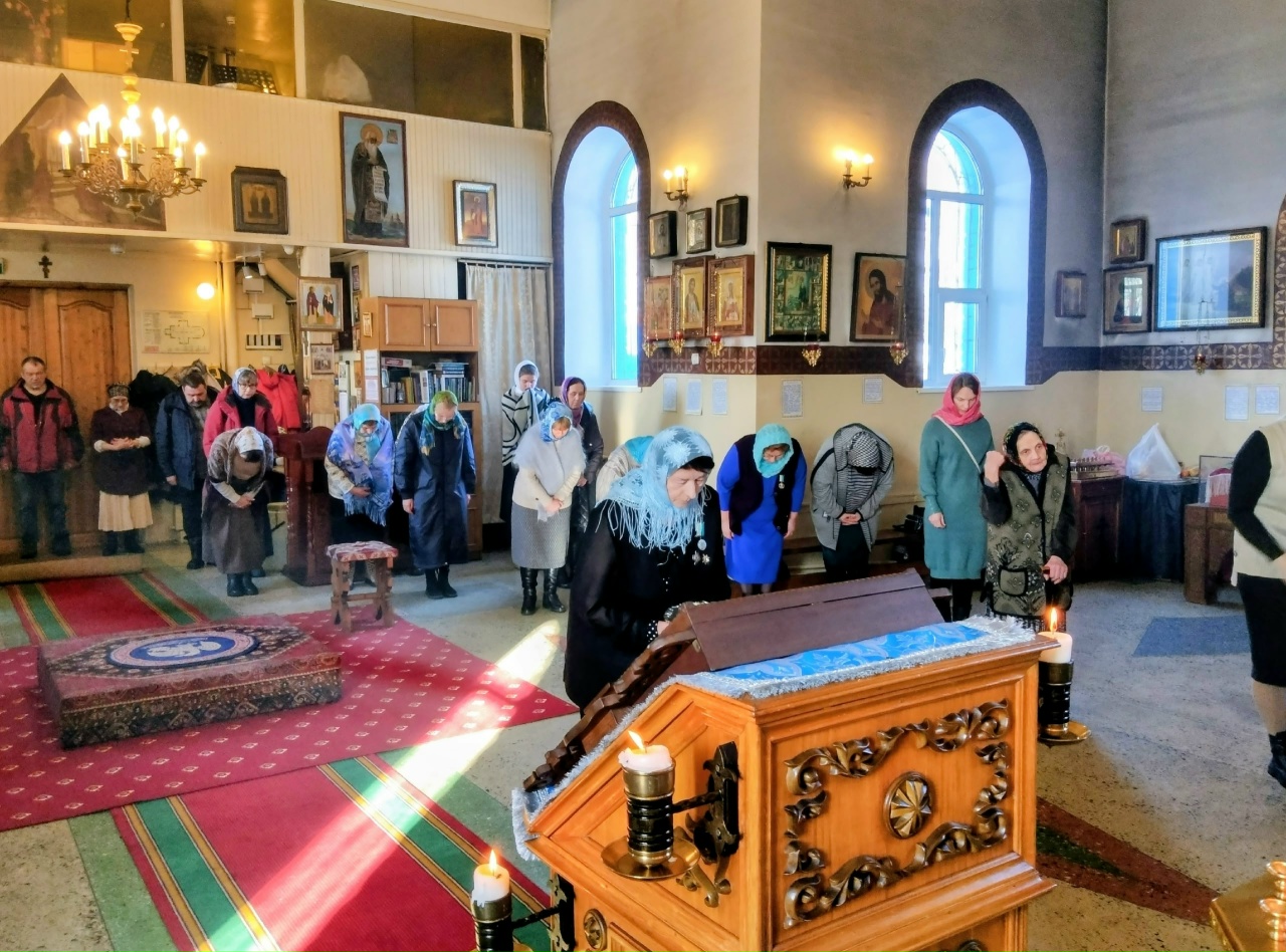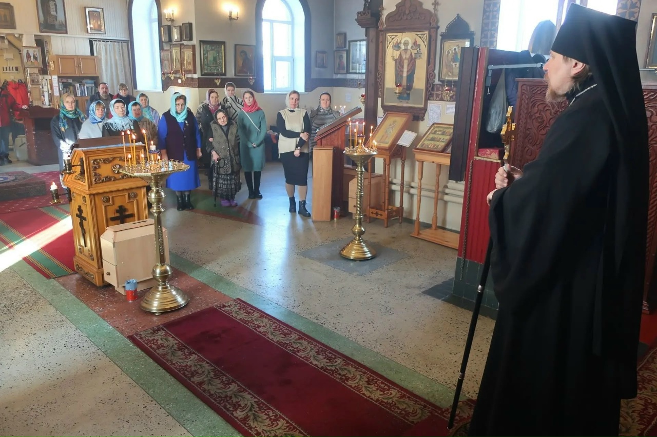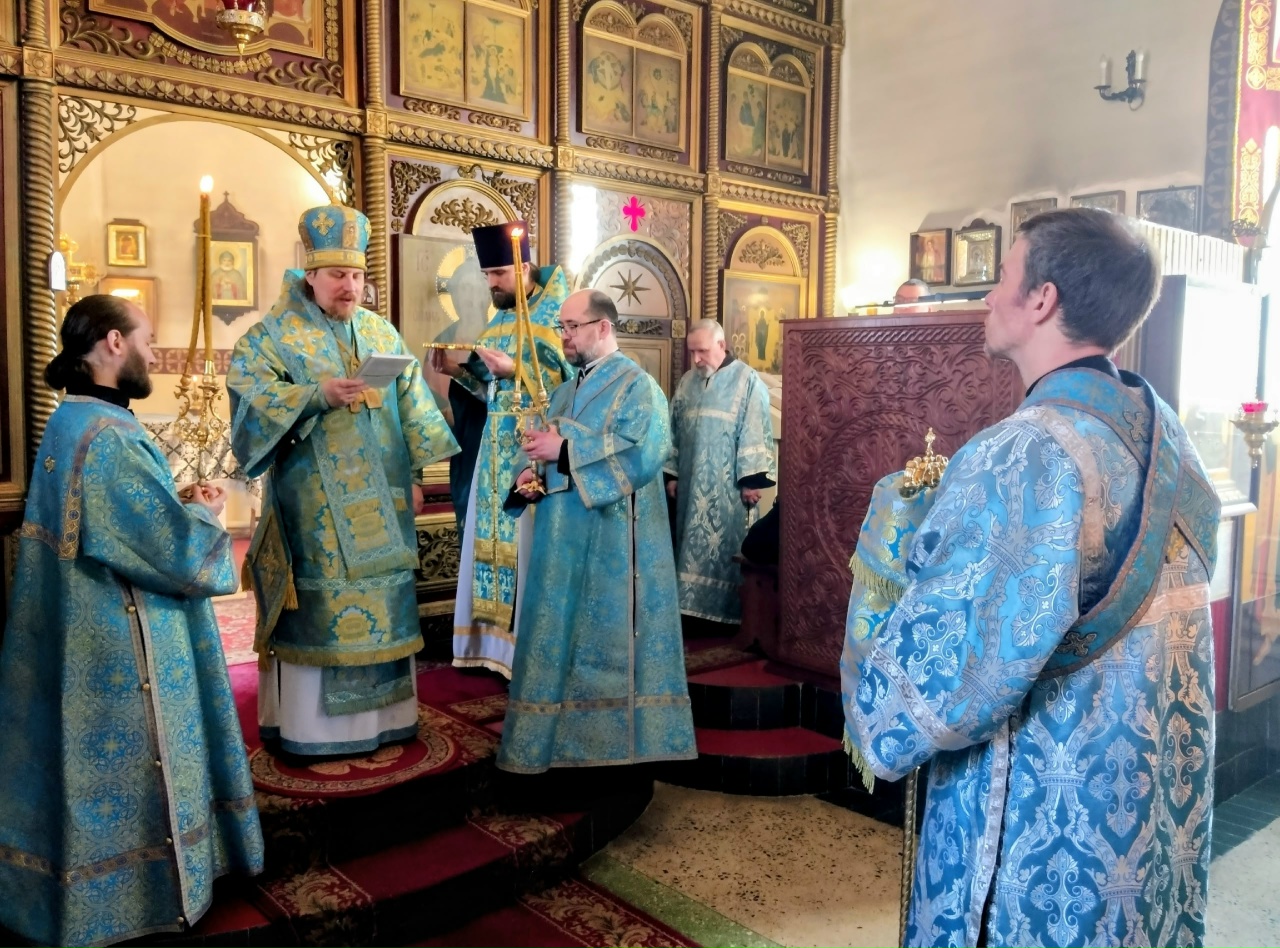 За литургией владыке сослужили настоятель храма протоиерей Игорь Дигтярёв, иеродиакон Феодорит (Линков), иподиаконы Роман Мухаметов, Георгий Бурцев и Алексий Ившин. Накануне в одноименном храме владыка совершил вечернее богослужение, которое в череде великопостных церковных служб имеет название: «Суббота Акафиста» или «Похвала Пресвятой Богородицы».
