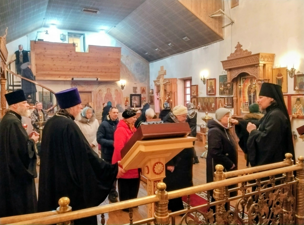 За богослужением владыке сослужили настоятель храма протоиерей Сергий Мищенко, игумен Аввакум (Зайко), протоиерей Дионисий Иванов, иеродиакон Феодорит (Линков), диакон Валерий Жуков, иподиаконы Роман Мухаметов и Георгий Бурцев.