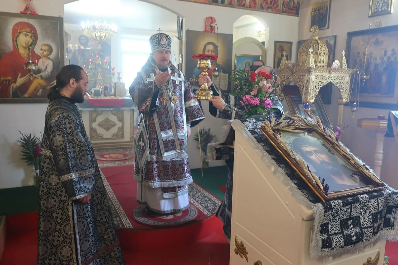 За богослужением владыке сослужили настоятель храма иерей Вячеслав Бондарев, иеродиакон Феодорит (Линков), иподиаконы Роман Мухаметов и Георгий Бурцев.