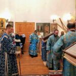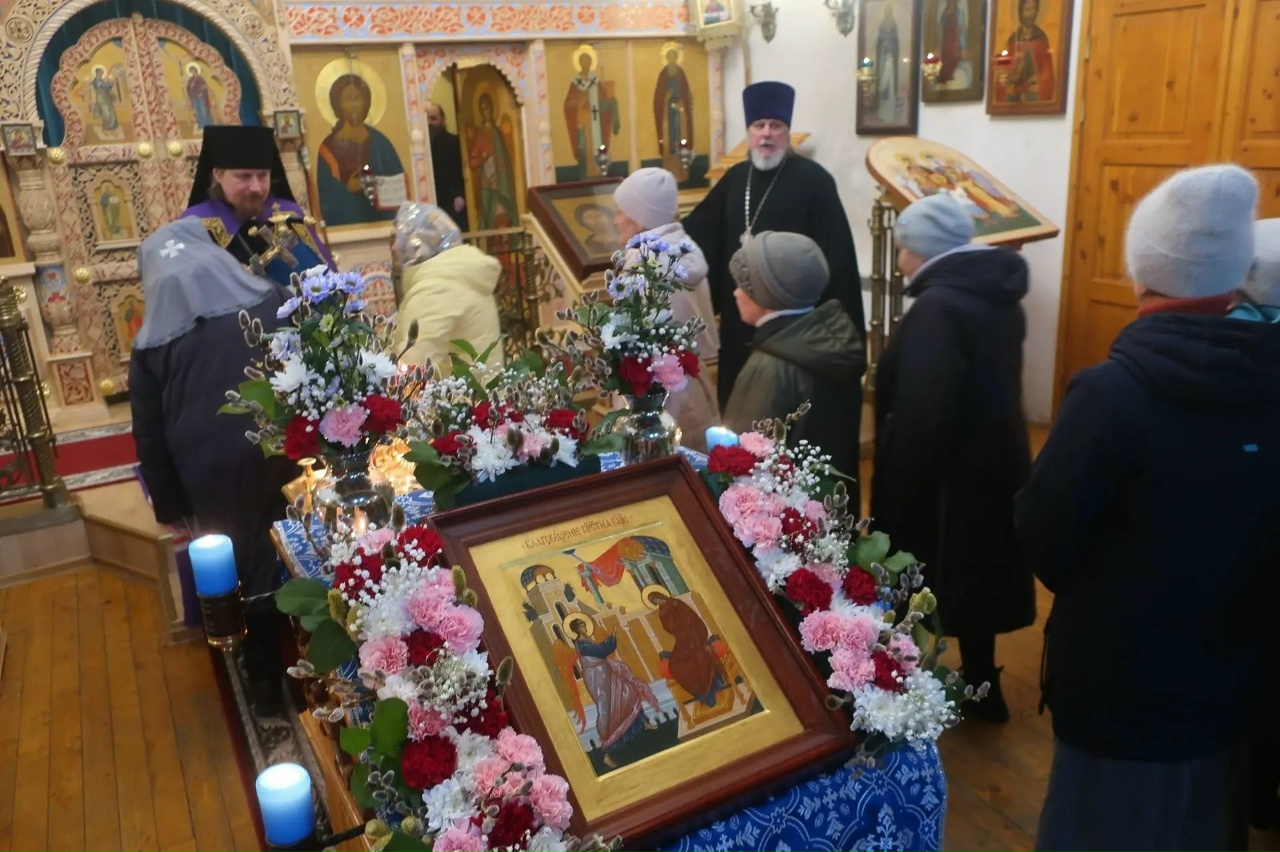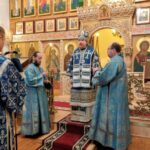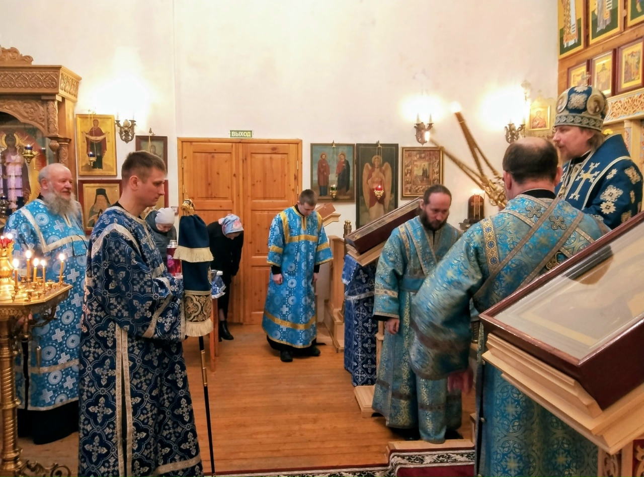 В конце литургии правящий архиерей совершил праздничное славление, были пропеты тропарь, кондак и величание празднику Благовещения.