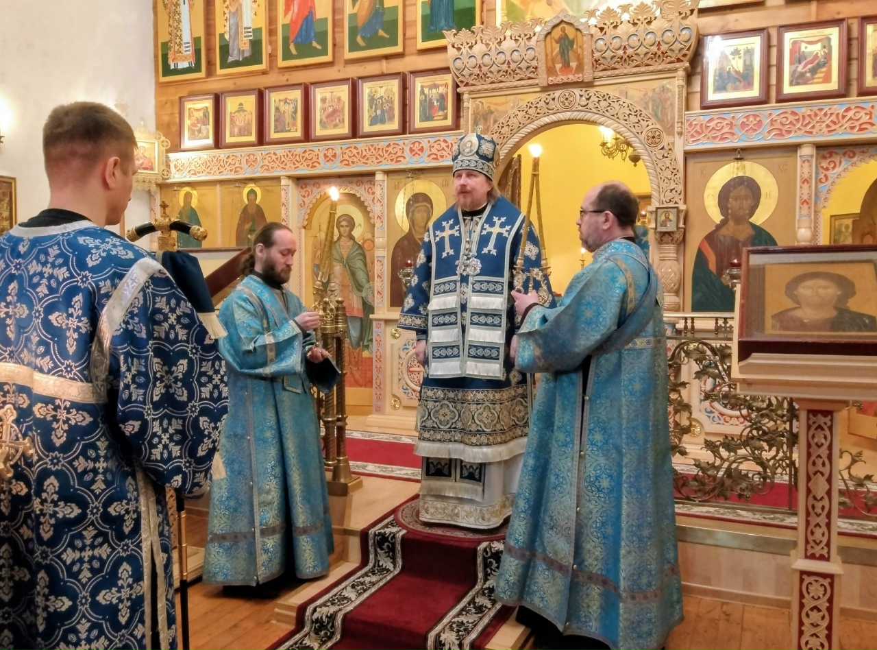 7 апреля 2026 года, в Великий Вторник и в праздник Благовещения Пресвятой Богородицы, епископ Североморский и Умбский Тарасий совершил Божественную литургию в храме святителя Николая г. Полярный. За богослужением владыке сослужили настоятель храма протоиерей Сергий Мищенко, иеродиакон Феодорит (Линков), диакон Валерий Жуков, иподиаконы Роман Мухаметов и Георгий Бурцев.