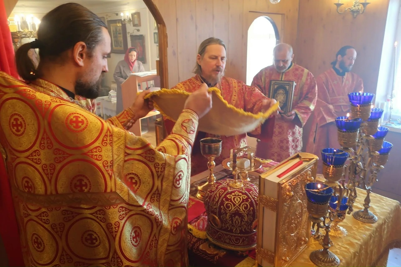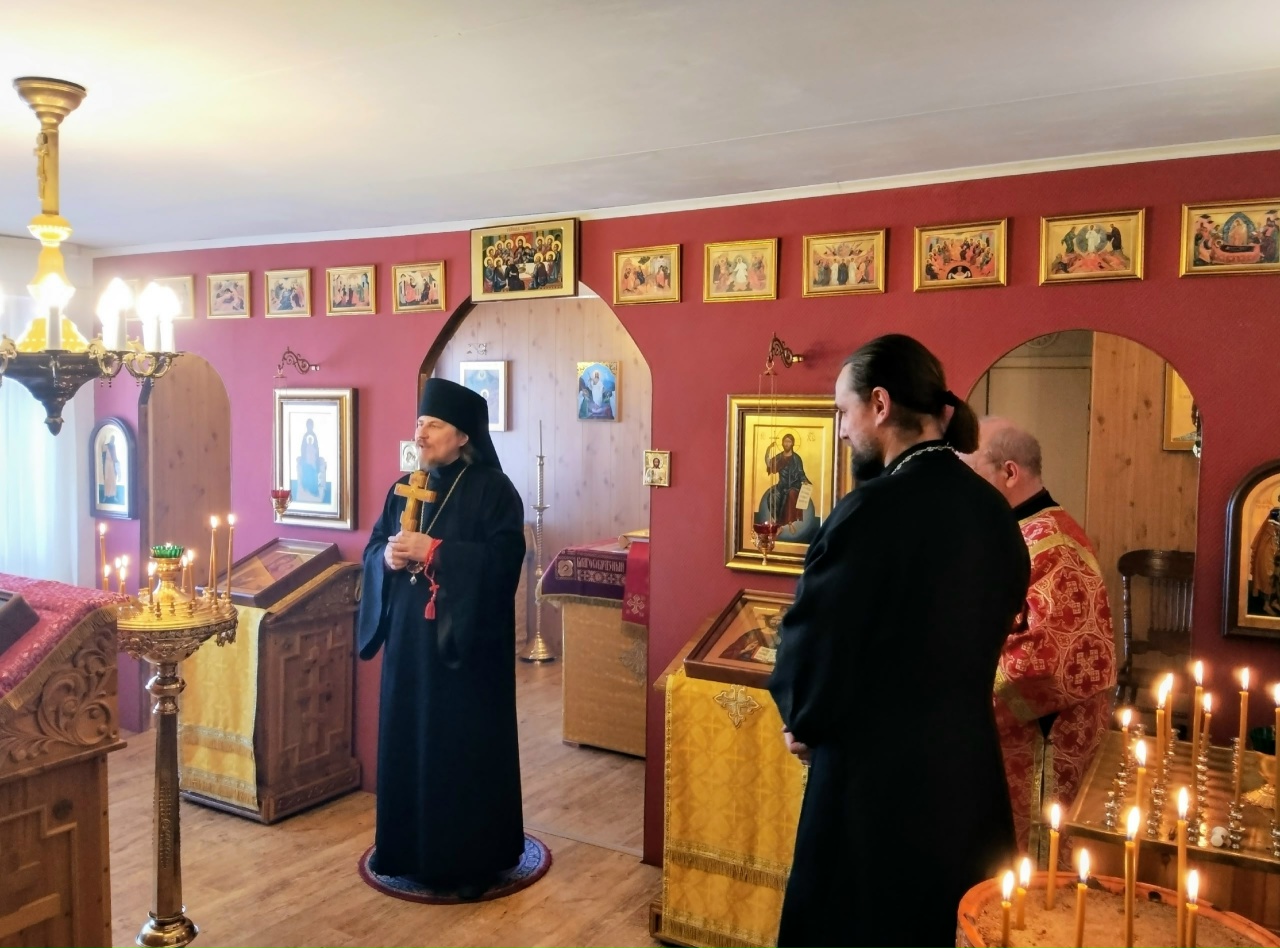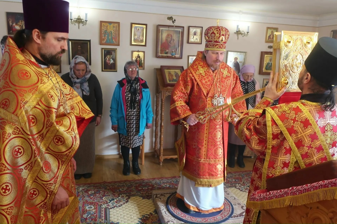 За литургией владыке сослужили настоятель прихода протоиерей Игорь Дигтярёв, иеродиакон Феодорит (Линков), иподиаконы Роман Мухаметов и Георгий Бурцев.