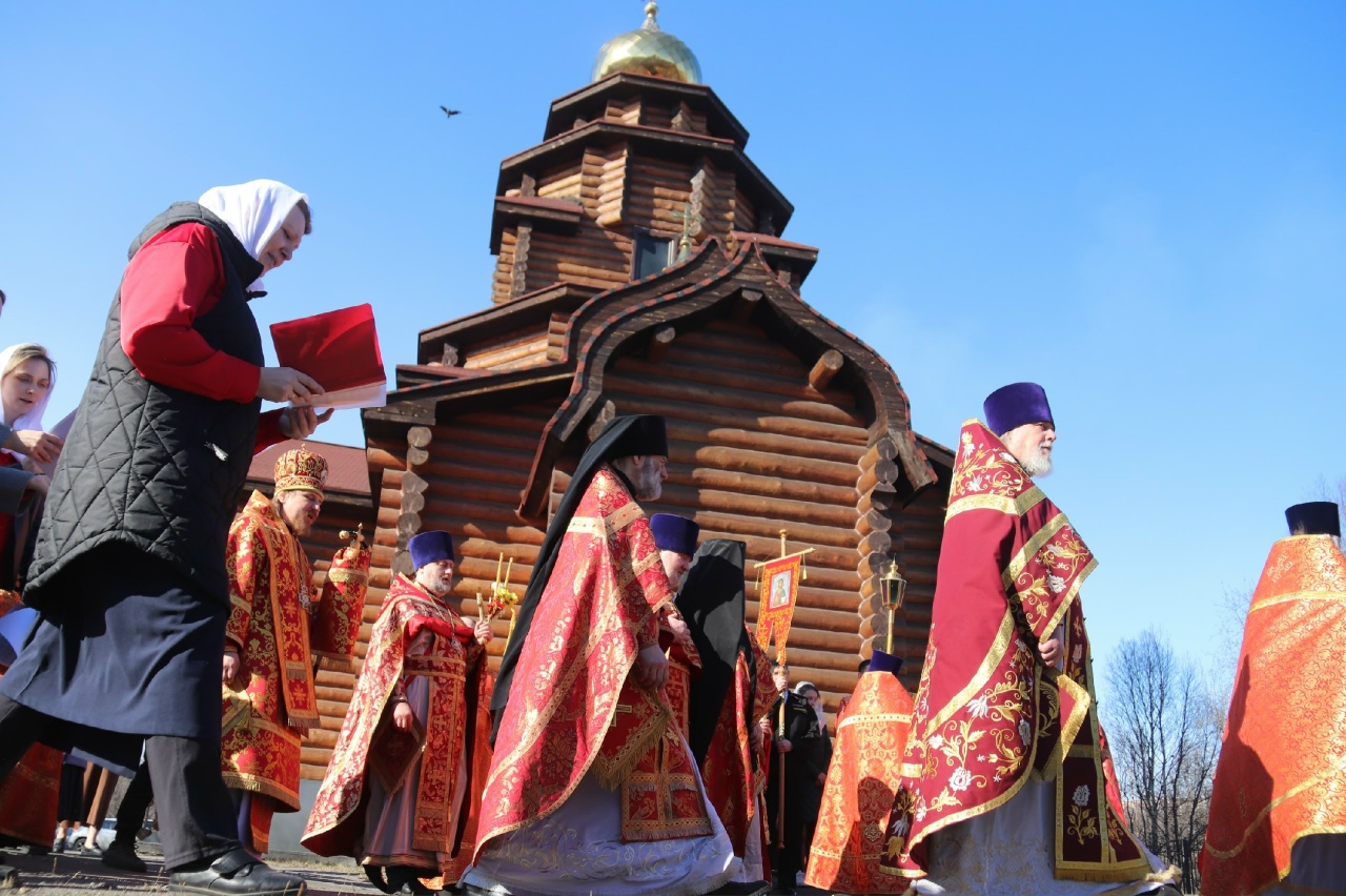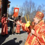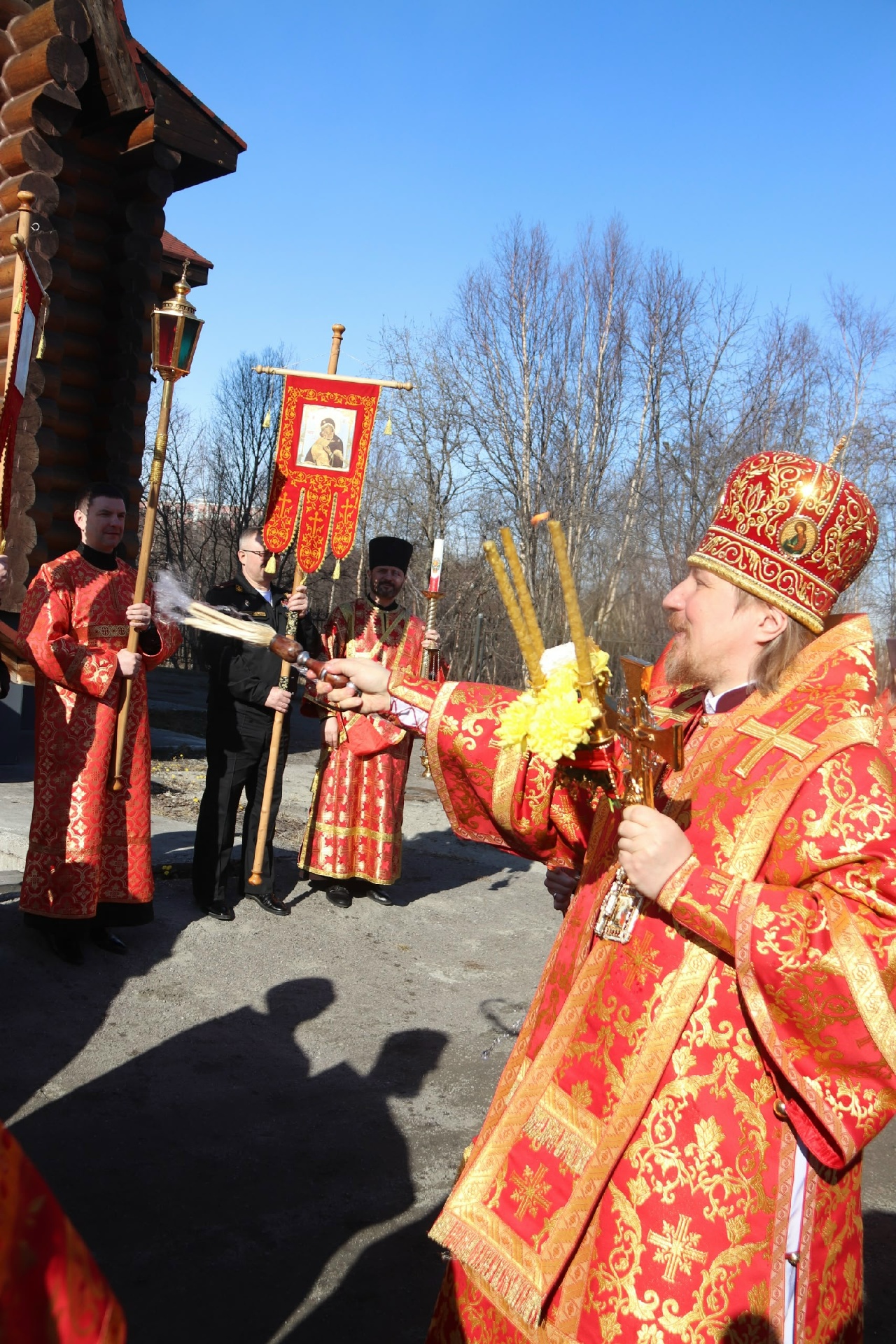 В окончании богослужения правящий архиерей возглавил крестный ход. По отпусте и благодарственным молитвам по Святом Причащении Его Преосвященство обратился с архипастырским словом к духовенству и молящимся, после чего поздравил духовенство и верующих с праздником Светлой Пасхи, провозгласив» «Христос воскресе!»