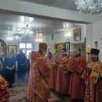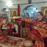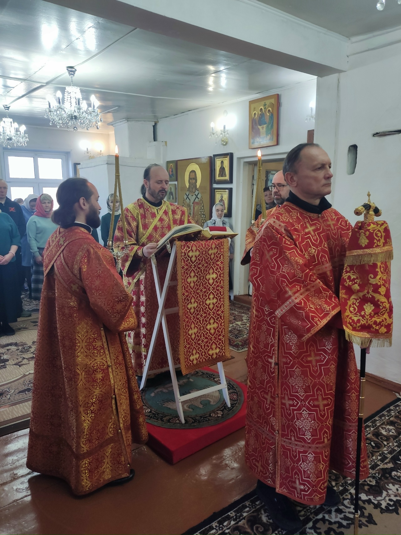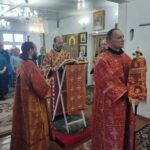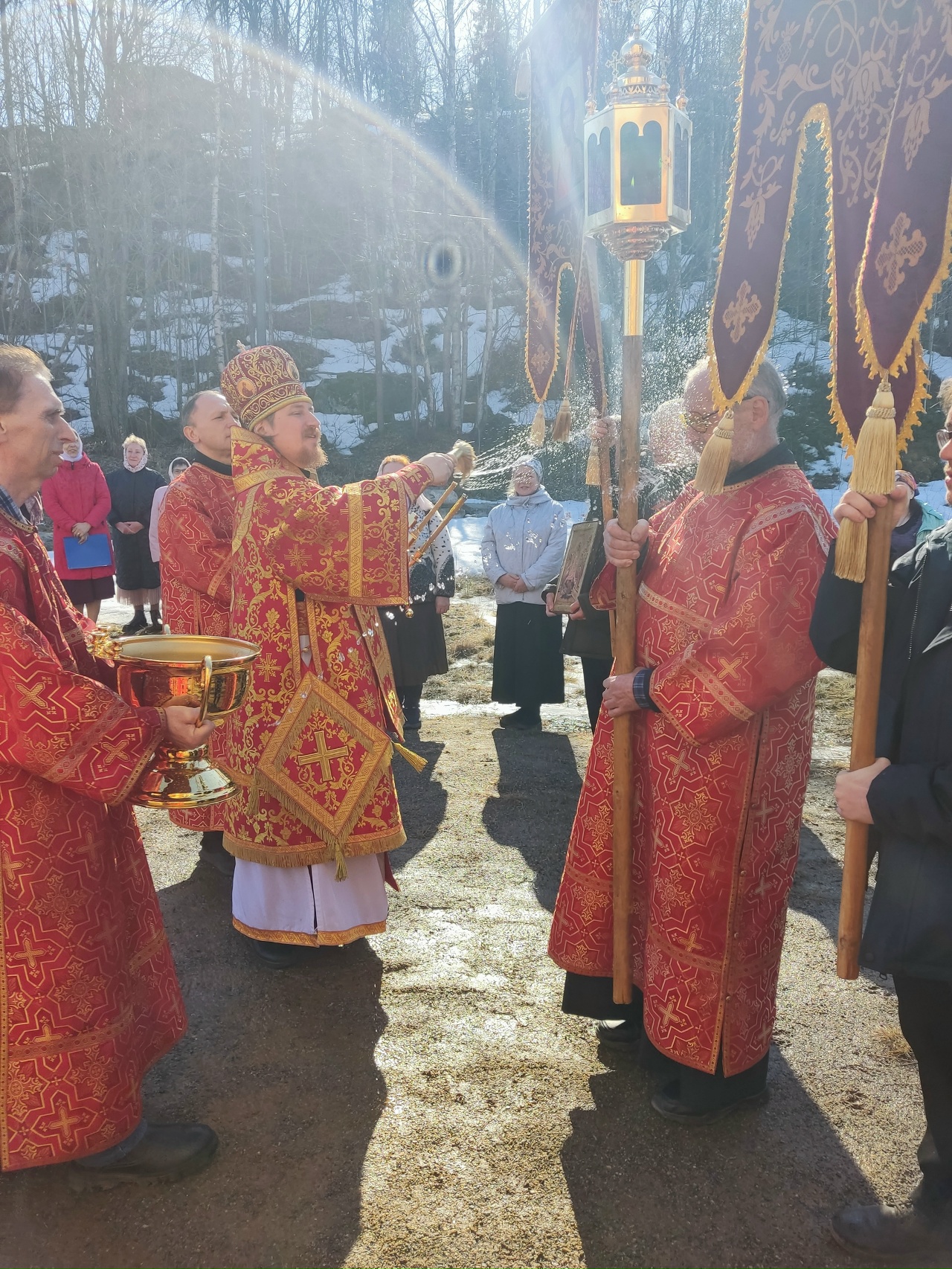 Владыке сослужили иеромонах Никодим (Коливатов), иеродиакон Феодорит (Линков) и диакон Александр Мельник. Хор возглавила Татьяна Мельник. После Крестного хода и возглашения многолетий владыка обратился к собравшимся со словом назидания.